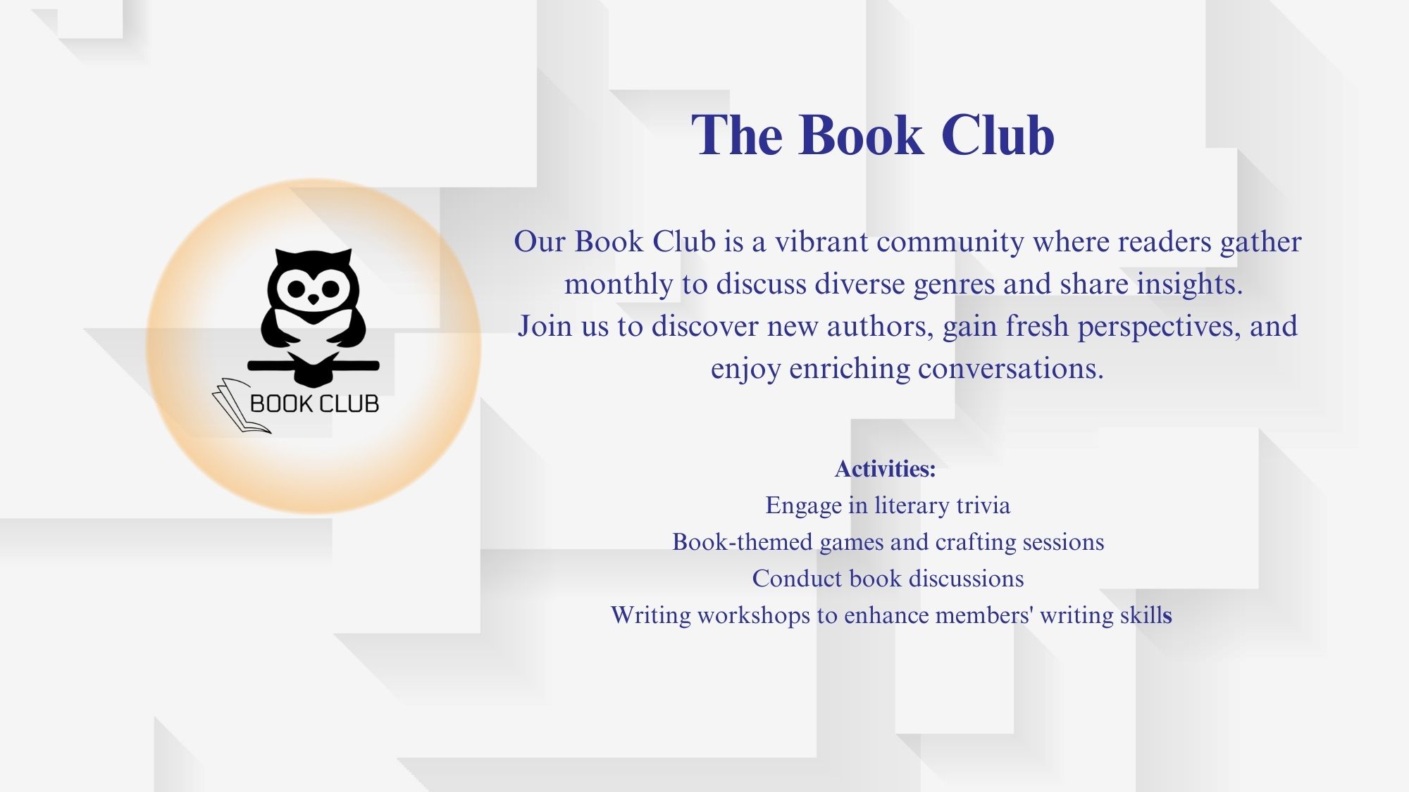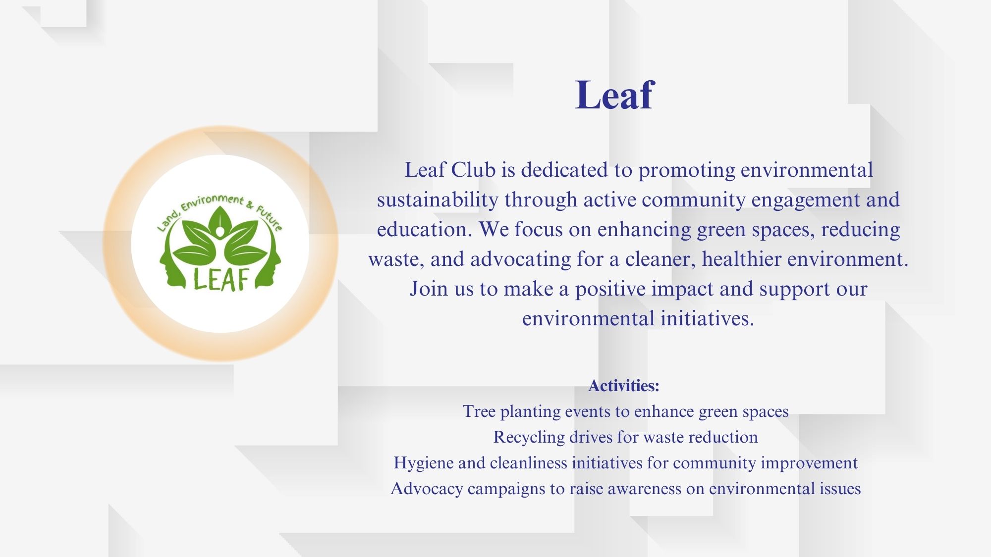 Planned: Free workshops, field trips, sports activities, term elections,club website, reputation points program, Monthly leaderboard for reputation points, etc.